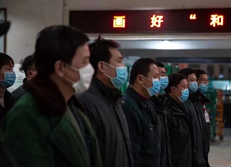 2月1日,武漢郵區(qū)中心局,上夜班的工作人員集合。這里目前24小時運(yùn)轉(zhuǎn),夜間也要處理數(shù)千件郵件。