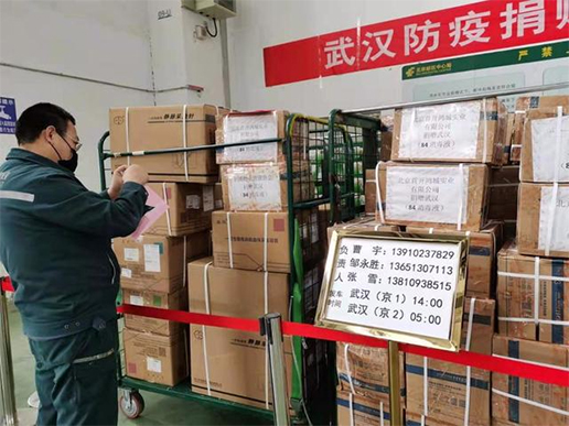 1月25日,中國郵政開通了防疫捐贈(zèng)物資免費(fèi)運(yùn)輸和配送的綠色通道。除了專機(jī)運(yùn)輸外,從北京出發(fā)的陸運(yùn)物資都是通過北京郵件綜合處理中心發(fā)往武漢。