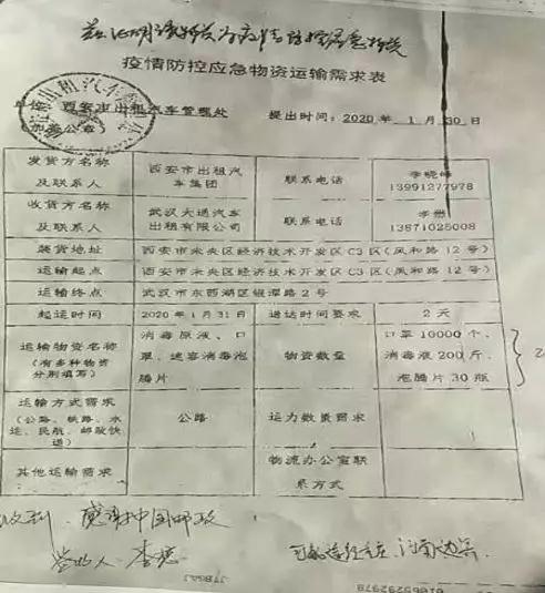下午1:00,西安市分公司運(yùn)送此批物資的車輛剛剛停穩(wěn)在郵件處理中心接發(fā)平臺前,西安郵區(qū)中心局緊急抽調(diào)的裝車人員便開始了緊張的卸車裝車作業(yè)。下午2:00,抗疫物資裝車完畢,運(yùn)輸中心駕駛員桑為民和李寧再次踏上馳援武漢的征程,并于2月1日早8:10順利到達(dá)卸貨點,將疫情防控應(yīng)急物資安全送達(dá)接收方——武漢大通汽車出租有限公司?!案兄x中國郵政!”收到急需物資的客戶忍不住在簽收單上寫下自己的心聲??吹浇邮辗叫盾嚾耸植蛔?,駕駛員桑為民、李寧顧不得一路疲憊,又主動幫助卸車,盡快將應(yīng)急物資交付客戶手中。這次特殊的郵運(yùn)工作也得到了社會媒體的關(guān)注,1月31日晚,陜西電視臺《都市快報》欄目對此事進(jìn)行了報道。