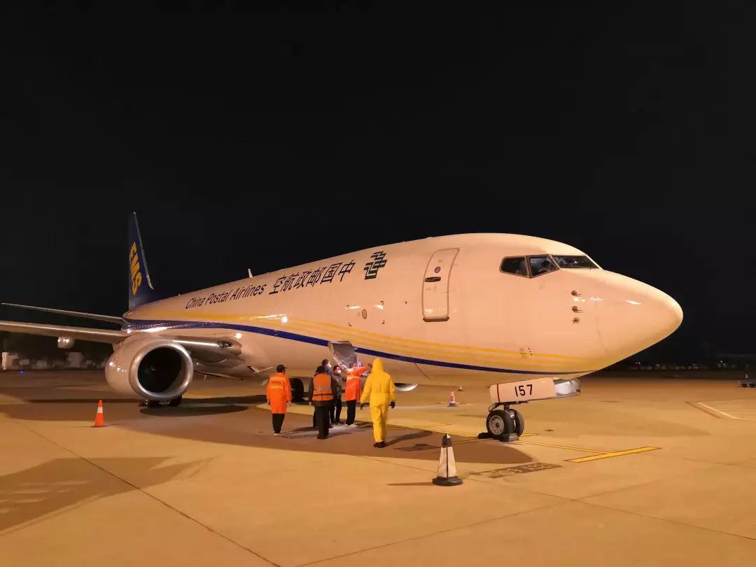 這架郵航專機(jī)運(yùn)輸?shù)囊廊皇蔷惩饩柚姆酪哚t(yī)療物資,運(yùn)輸指令于2月7日到達(dá)郵航。根據(jù)相關(guān)物資運(yùn)抵上海時間的調(diào)整,郵航相關(guān)部門及時跟進(jìn),調(diào)整專機(jī)運(yùn)輸實(shí)施方案。2月8日下午,在得到民航局方面批復(fù)后,郵航運(yùn)行控制系統(tǒng)、飛行系統(tǒng)、機(jī)務(wù)系統(tǒng)、地面保障系統(tǒng)工作和相關(guān)防護(hù)工作迅速展開,為專機(jī)運(yùn)輸防疫醫(yī)療物資空中快速通道的再次開啟而精心準(zhǔn)備。