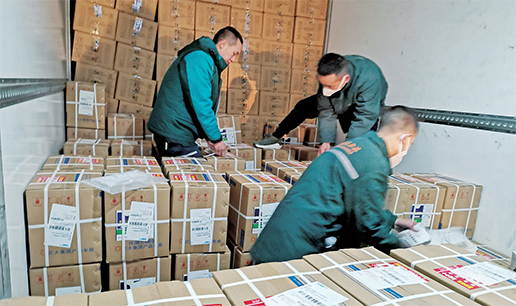 四川郵政員工趕發(fā)防疫物資。 □周旭 攝影報(bào)道
