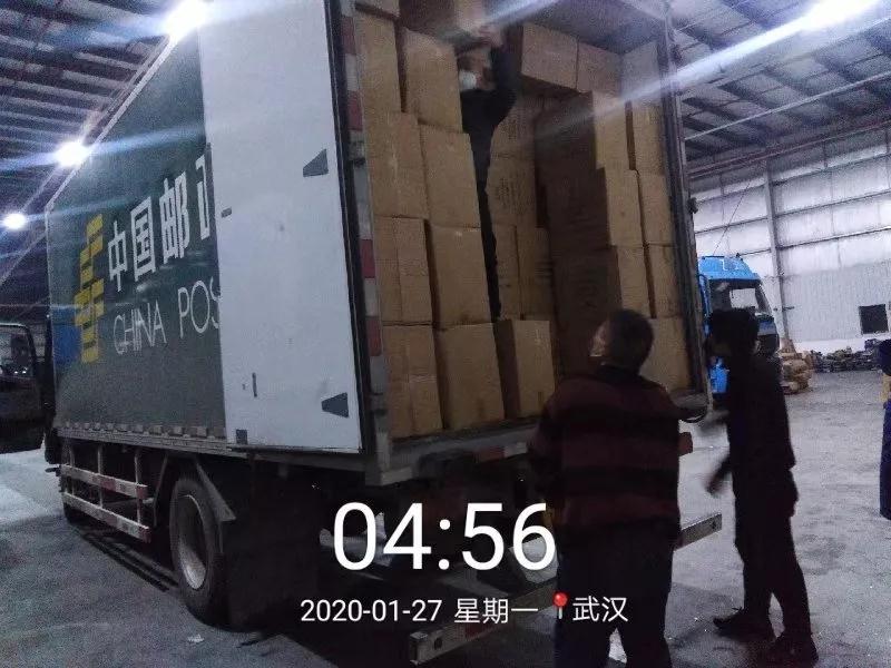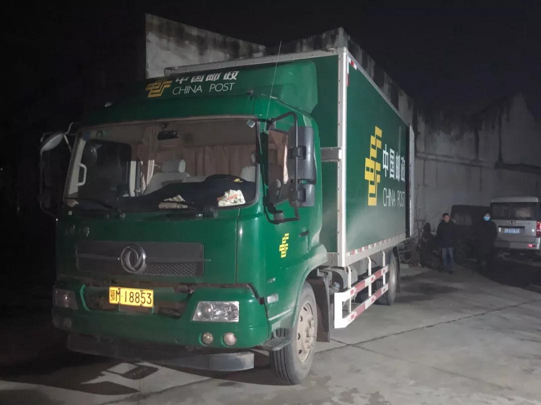 23時(shí)30分,2萬(wàn)件防護(hù)服共計(jì)400箱物資在彭場(chǎng)工業(yè)園開(kāi)始裝車(chē)。在2個(gè)多小時(shí)的裝車(chē)工作后,27日凌晨2時(shí),滿滿一車(chē)的防疫物資由駕押?jiǎn)T廖棟駕駛郵車(chē)送往武漢。