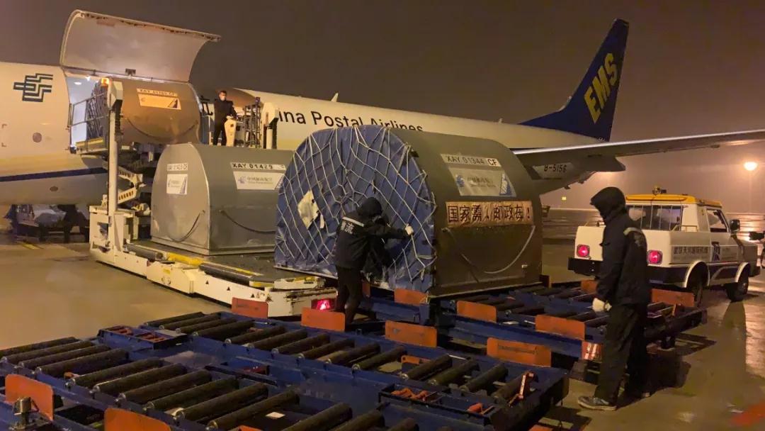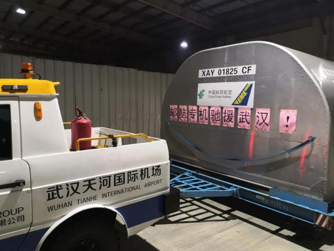 2月27日17時(shí)32分,中國(guó)郵政航空公司CF9121航班承載著總重1.618噸的16臺(tái)德國(guó)產(chǎn)ECMO設(shè)備及配套耗材從北京首都機(jī)場(chǎng)起飛,于19時(shí)16分在小雨中飛抵武漢天河機(jī)場(chǎng),郵航武漢辦事處和天河機(jī)場(chǎng)地面保障部門第一時(shí)間展開卸機(jī)作業(yè),完成這批救命設(shè)備的空陸交接。