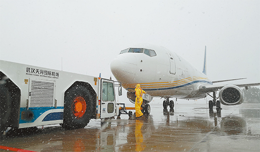 郵航直飛航班滿載防疫物資頂風冒雪抵達武漢天河機場。 楊衛(wèi)東 提供