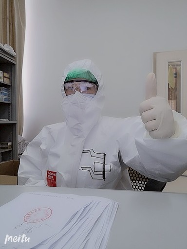 7:30站到了緩沖區(qū)?!岸脊治耶?dāng)初不好好上學(xué),要是不上護(hù)校念醫(yī)科大學(xué)該有多好,早就在第一線了”“我是郵政員工,不能給中國(guó)郵政丟臉”“我現(xiàn)在是志愿者,我要完成好每項(xiàng)任務(wù)”“我在發(fā)熱門診,我得做好防護(hù),我的抵抗力還是很強(qiáng)的”……這是楊志珍第一次穿防護(hù)服,而且這個(gè)第一次就“直奔”一級(jí)防護(hù),此時(shí),楊志珍腦子里像不停調(diào)著頻率的收音機(jī)一樣。