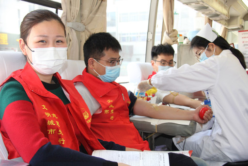 被金華團市委評為“最美戰(zhàn)疫志愿組織”的金華市分公司團委青年志愿服務(wù)隊組織了十多名青年團員參與獻血?!斑@是我第一次獻血,在同事們的鼓勵下,我克服了緊張情緒,勇敢邁出了這一步?!泵鎸︾R頭,從農(nóng)村網(wǎng)點驅(qū)車30多公里趕來參與獻血的志愿服務(wù)隊隊員伍翔云(左)露出了微笑,她第一次參與無償獻血就獻血400毫升?! 鯀莻餍?nbsp; 攝影報道