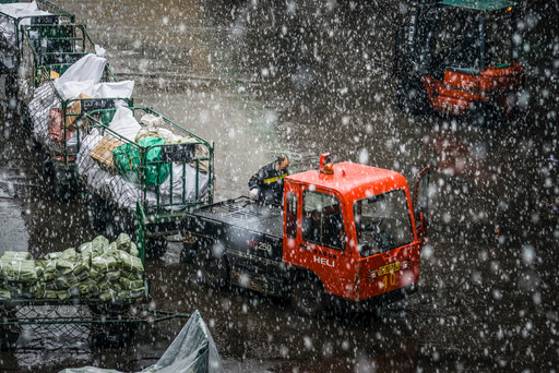 2月14日,北京市郵區(qū)中心局負(fù)責(zé)接發(fā)郵件的轉(zhuǎn)運(yùn)分揀員正在風(fēng)雪中緊張地轉(zhuǎn)運(yùn)處理封發(fā)郵件。為了讓捐贈(zèng)物資快速送達(dá)武漢,北京中心局在分揀環(huán)節(jié)對(duì)防疫物資實(shí)施“三?!薄拔鍍?yōu)”工作機(jī)制,并開通兩個(gè)郵件接收垛口作為綠色通道,實(shí)行全程單獨(dú)處理?! 跬跣Σ?nbsp; 攝