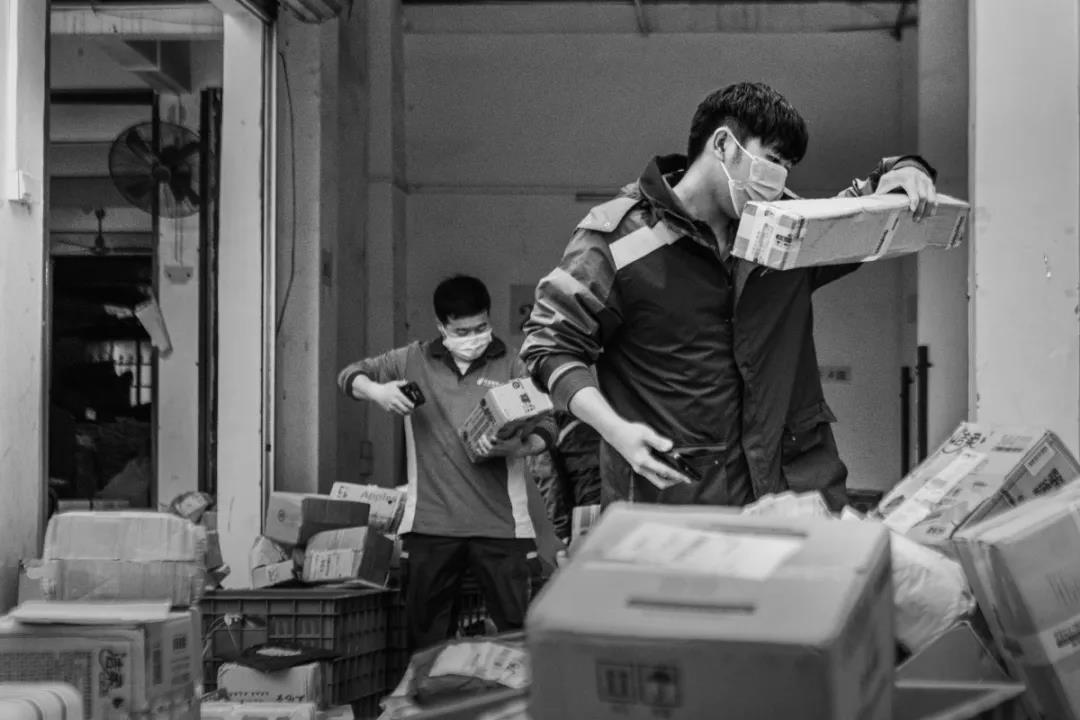 自疫情發(fā)生以來(lái),廣州郵政人從沒(méi)有停止過(guò)為人民群眾派送郵件報(bào)刊,一直踐行著“人民郵政為人民”的神圣使命。作品拍攝于2020年3月廣州市郵政分公司曉港西馬路投遞部作業(yè)現(xiàn)場(chǎng)。