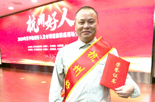 5月26日上午,浙江省杭州市余杭區(qū)郵政分公司良渚分局投遞員向達(dá)勇參加2020年首季“杭州好人”發(fā)布暨道德模范現(xiàn)場(chǎng)交流活動(dòng),并接受表彰。向達(dá)勇是湖南人,今年51歲,是余杭區(qū)良渚分局一名普通投遞員。2019年11月19日在投遞途中救起一位落水女子后默默離開。新華社、《人民日?qǐng)?bào)》、央視新聞、浙江衛(wèi)視等十余家中央、省、市級(jí)媒體紛紛報(bào)道了《三年前兒子不幸溺水身亡 三年后他用臂彎托起一條生命》的文章,為向師傅的大愛(ài)點(diǎn)贊?! 蹴n穎 攝影報(bào)道