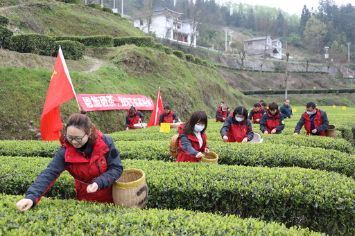 組織黨員幫茶農(nóng)采春茶,湖北郵政助力農(nóng)產(chǎn)品銷售呈現(xiàn)多維度、全方位的格局。向旭暉 攝