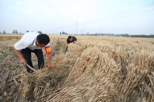 6月6日,中國小麥第一縣、“豫北糧倉”河南省滑縣棗村鄉(xiāng)大屯村一方金燦燦的麥田里,郵儲(chǔ)銀行滑縣支行派駐該村“第一書記”陳紅利帶領(lǐng)30多名黨員志愿者組成的“割麥隊(duì)”,全力幫助“三留守”農(nóng)戶和缺乏勞動(dòng)力的困難戶、軍烈屬等收割倒伏的麥子。