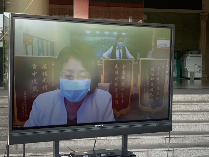 儀式上,廣州郵政與北京郵政通過現(xiàn)場電視大屏,進(jìn)行了遠(yuǎn)程網(wǎng)絡(luò)連線?!半m然天各一方,但視頻連接著你我。”北京郵政副總經(jīng)理王艷十分感動,她在視頻中展示了三面錦旗,向廣州表示,“疫情無情人有情,雪中送碳是親人!”