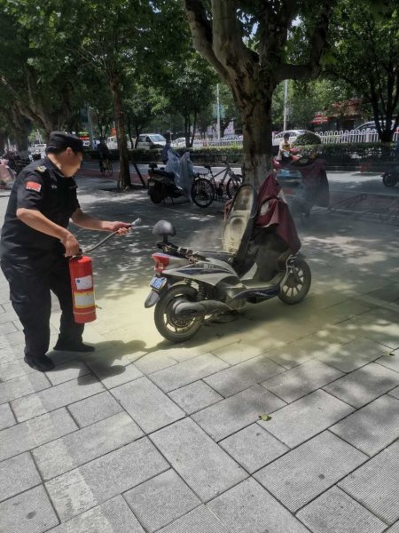 當(dāng)天中午12:20分,網(wǎng)點(diǎn)正在準(zhǔn)備例行消毒,張師傅對(duì)網(wǎng)點(diǎn)及周邊環(huán)境進(jìn)行日常巡查,第一時(shí)間發(fā)現(xiàn)了自燃的電動(dòng)車,并迅速拿出了滅火器上前滅火。“外面的電動(dòng)車很多,停放的又比較密集,不滅掉等下會(huì)燒到其他車子?!睆?zhí)m洲在保安的崗位上工作了十多年,“郵儲(chǔ)銀行襄陽(yáng)市分行營(yíng)業(yè)部經(jīng)常進(jìn)行消防安全培訓(xùn),而且每月進(jìn)行演練,知道怎么滅火,這點(diǎn)事情沒什么怕的?!?/p>