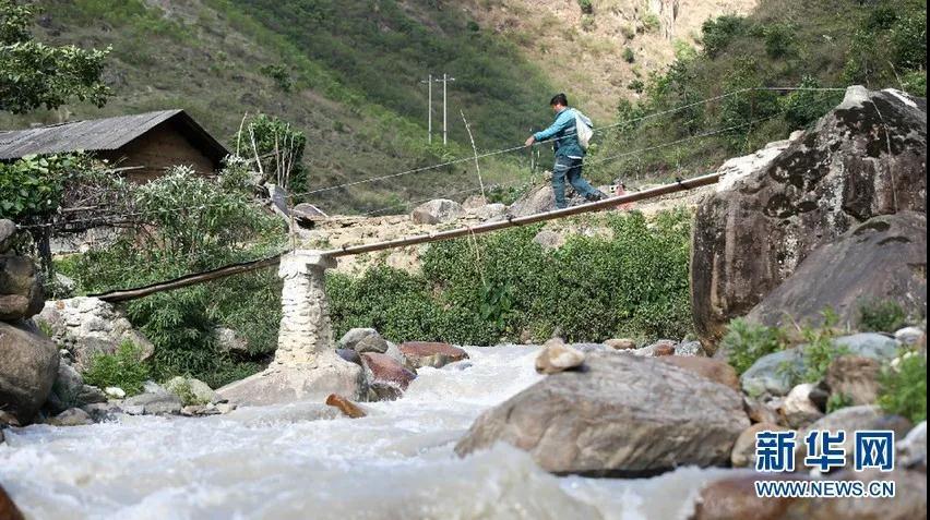 桑南才送郵件途中經(jīng)過獨木橋(5月10日攝)
