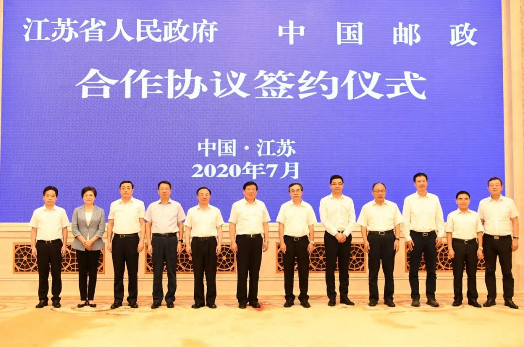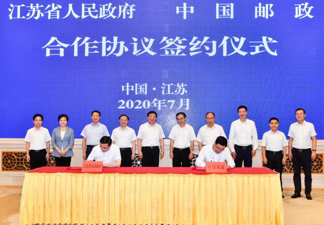 7月30日,中國郵政集團有限公司與江蘇省人民政府在南京簽署戰(zhàn)略合作協(xié)議。江蘇省委書記婁勤儉、省長吳政隆會見中國郵政集團有限公司黨組書記、董事長劉愛力,黨組副書記、總經理張金良一行,并共同出席簽約儀式。江蘇省委常委、省委秘書長郭元強,副省長費高云,南京市市長韓立明,省政府秘書長陳建剛,集團公司副總經理康寧參加有關活動。