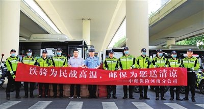 7月29日上午,中郵保險河南分公司開展夏日送清涼活動,為鄭州交警一大隊鐵騎中隊送去礦泉水、洗漱用品等防暑降溫物資,對他們堅守崗位、無私奉獻表示親切慰問,為保障轄區(qū)道路交通安全所付出的辛勤勞動表示感謝。