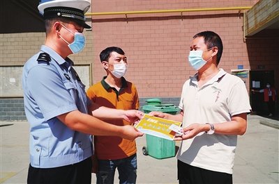 庫爾勒市交警與巴州分公司員工上門送證送牌。