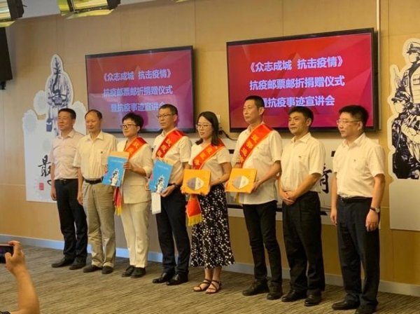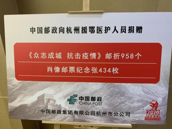 8月20日上午,在杭州郵政分公司大樓的報告廳,由杭州市衛(wèi)生健康委員會、杭州市市郵政管理局、杭州郵政分公司聯(lián)合舉辦《眾志成城 抗擊疫情》郵折捐贈儀式。杭州郵政分公司向杭州援鄂抗疫醫(yī)務(wù)工作者捐贈《眾志成城 抗擊疫情》郵票郵折共計958套;肖像郵票紀(jì)念張434張。此次捐贈給醫(yī)務(wù)工作者的《眾志成城 抗擊疫情》紀(jì)念郵折,是中國郵政特別發(fā)行的郵票,用于銘記中國力量和中國精神,并將郵票發(fā)行收入捐獻(xiàn)用于救災(zāi)抗疫。