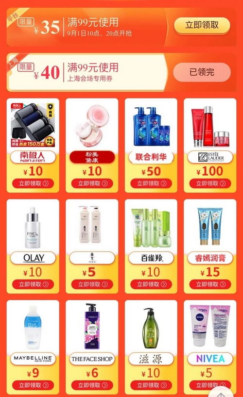 可領取50減10及30減5專場優(yōu)惠券