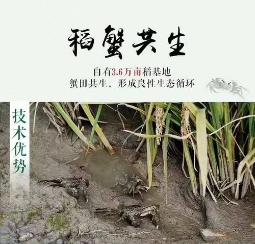 種植水稻的同時,采用生態(tài)立體種養(yǎng)技術(shù),在稻田里養(yǎng)蟹,蟹肥稻香,滿地金黃,令稻蟹互利共生。稻為蟹庇蔭、供養(yǎng);蟹為稻除草、滅蟲、凈化水質(zhì)、提供有機(jī)肥滋養(yǎng),充分發(fā)揮“1+1大于2”的效果,實(shí)現(xiàn)互利共贏,和諧共生。水稻和河蟹混養(yǎng)的田地不能使用農(nóng)藥和化肥,因而盤錦大米可以說是綠色、生態(tài)的代名詞!