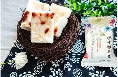 “古江”沖泡即食銀耳羹,選用古田新鮮銀耳,并采用優(yōu)質(zhì)原料,輔料經(jīng)過熟制工藝,經(jīng)過先進的FD凍干技術(shù)制作而成。生產(chǎn)工藝既保留了鮮燉銀耳的色、香、味、形,又不破壞銀耳本身的營養(yǎng)物質(zhì),使得產(chǎn)品具有食用方便、口感好等特點?!肮沤便y耳羹不添加防腐劑、香精和色素,是一道純天然的食材,銀耳羹中還加入了雪梨、紅棗和枸杞,味道濃香軟糯、甘甜可口,具有較高的營養(yǎng)價值。
