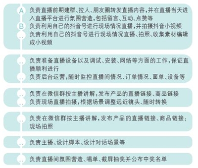 通過制作工作任務(wù)行動表和制作直播流程安排表進(jìn)行人員安排,保證工作人員與直播環(huán)節(jié)緊緊相扣。