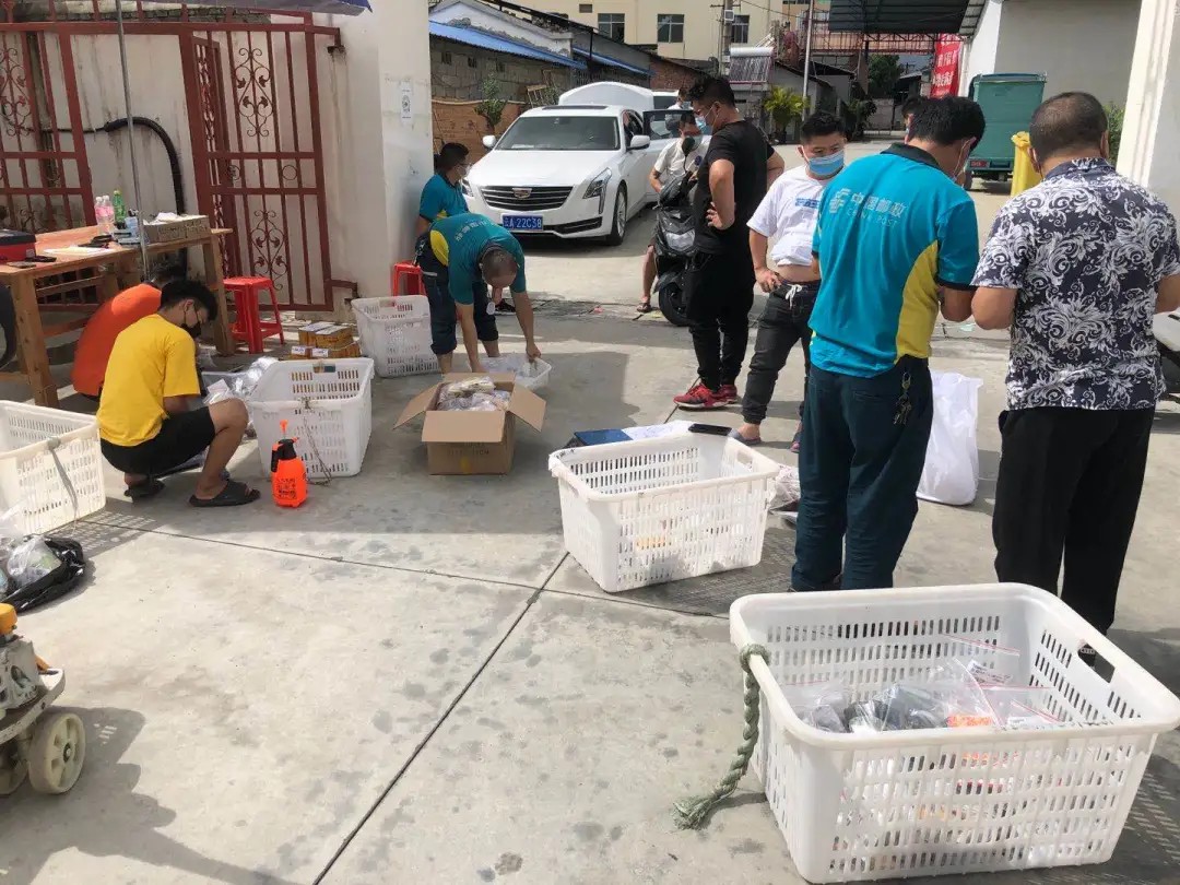 瑞麗市分公司珠寶項(xiàng)目部工作人員按要求在處理中心門(mén)口清點(diǎn)郵件并消毒、包裝