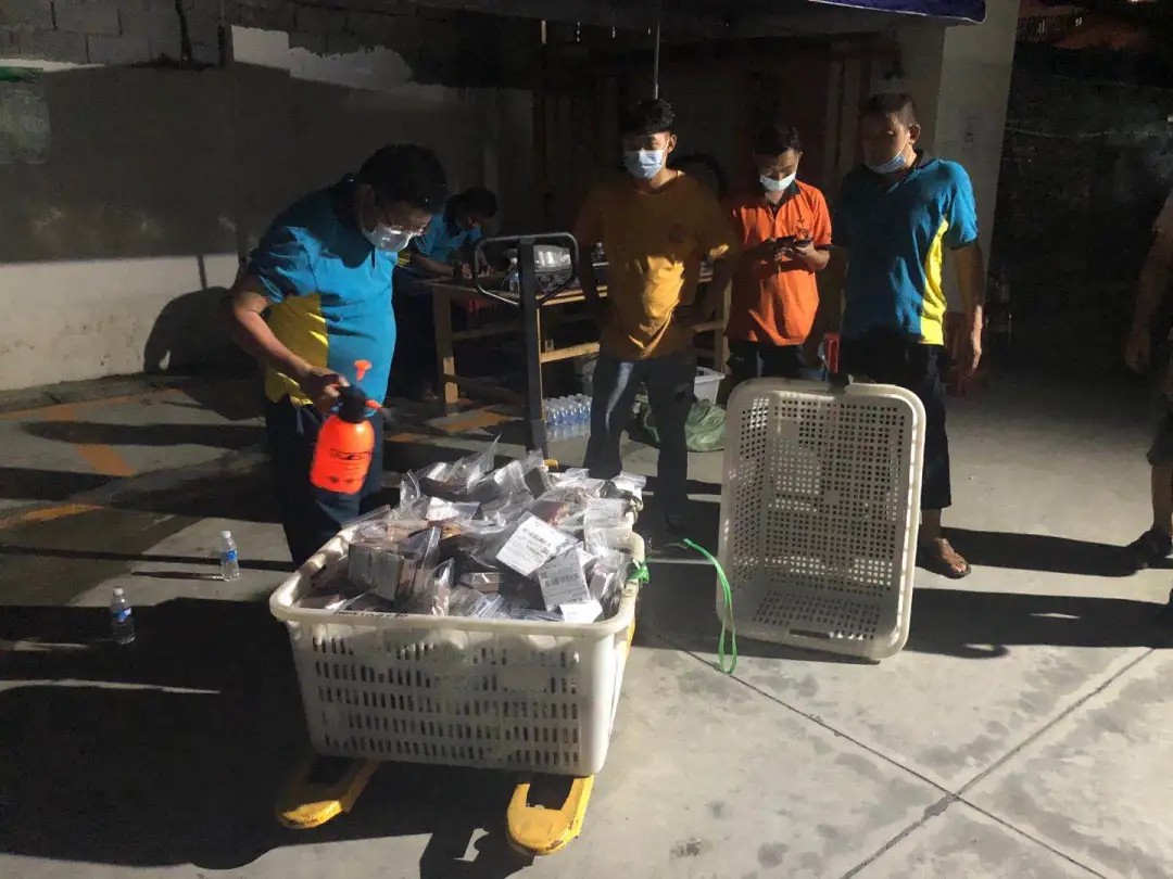 瑞麗市分公司珠寶項(xiàng)目部工作人員深夜對(duì)收到的郵件做消毒處理