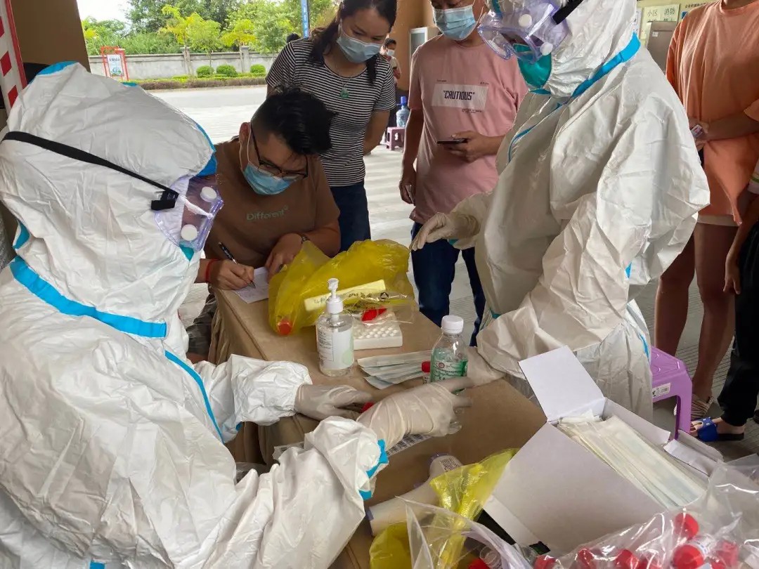瑞麗市分公司協(xié)助醫(yī)護(hù)人員在對(duì)網(wǎng)格片區(qū)所有人員做核酸檢測(cè)