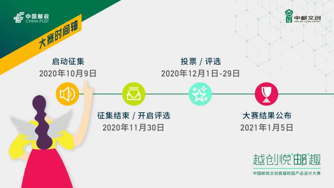本次賽事以“開放多元合作、鼓勵全社會參與、精準(zhǔn)定向轉(zhuǎn)化、堅持結(jié)果導(dǎo)向”為宗旨,面向全社會征集生活類、科技類、創(chuàng)意類三大類別設(shè)計,參賽組別設(shè)定為個人組和企業(yè)組。大賽組委會將重點關(guān)注作品的原創(chuàng)性、藝術(shù)性、引領(lǐng)性和實用性,同時注重新工藝、新材料、新技術(shù)的使用以及作品的創(chuàng)造性轉(zhuǎn)化和創(chuàng)新性發(fā)展。該賽事鼓勵大學(xué)生、青年、獨立設(shè)計師萌動創(chuàng)意,也歡迎全社會企業(yè)、團體機構(gòu)積極投稿,與中國郵政共同開發(fā)具有市場前景的設(shè)計作品。