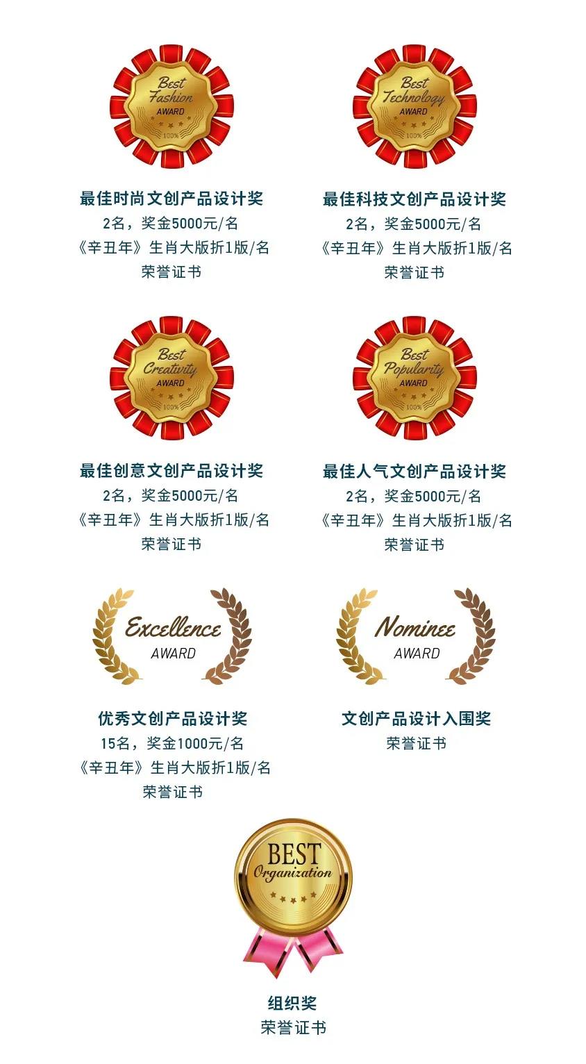 本次賽事還設(shè)立了最佳時尚獎、最佳科技獎、最佳創(chuàng)意獎、最佳人氣獎和優(yōu)秀獎等眾多獎項,中國郵政將扶植大賽優(yōu)秀項目,使獲獎作品優(yōu)先轉(zhuǎn)化為具有市場價值的官方文創(chuàng)產(chǎn)品,實現(xiàn)商業(yè)化運營,還將選擇所有獲獎且具備商業(yè)化推廣潛力的產(chǎn)品,將其列入中郵文創(chuàng)孵化項目。作品作者均將獲得郵政文化資源、項目資金、渠道營銷等多方面支持。