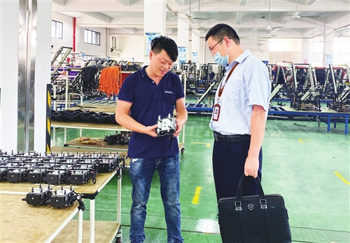 圖為該分行信貸人員走進當(dāng)?shù)乜萍夹推髽I(yè)生產(chǎn)車間,了解企業(yè)的融資需求。