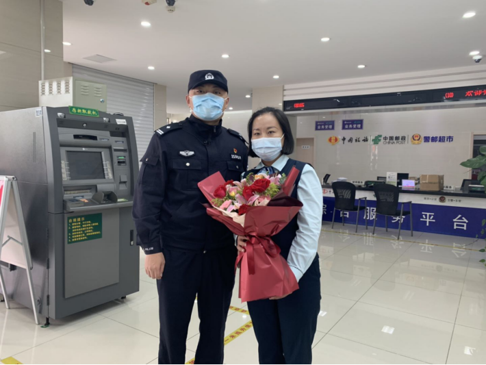 “感謝你積極出手?jǐn)r截了這起電信詐騙,挽救了一個(gè)家庭?!?0月14日,浦口公安分局珠江派出所的民警及見(jiàn)義勇為珠江工作站一行人來(lái)南京浦口郵政分公司珠江支局,為理財(cái)經(jīng)理顏燕獻(xiàn)上鮮花,并授予“見(jiàn)義勇為積極份子”稱(chēng)號(hào),以表彰其在防止客戶(hù)遭受電信詐騙中做出的努力和貢獻(xiàn)。