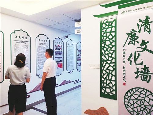 9月以來,惠州市分行機關(guān)本部二樓增添了一道美麗的風景線,清廉文化墻使原來的白墻變成各黨支部開展警示教育的“活教材”、黨員領(lǐng)導(dǎo)干部接受精神洗禮的“充電站”。