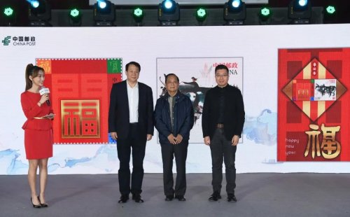 在2021辛丑年即將到來(lái)之際,今天(11月5日),中國(guó)郵政集團(tuán)有限公司在中國(guó)郵政郵票博物館舉辦2021年賀年有獎(jiǎng)明信片、賀年專用郵票發(fā)布會(huì),向社會(huì)發(fā)布以“生肖?!睘橹黝}的普通明信片、極限明信片、祝???021年賀年專用郵票。本次發(fā)布會(huì)主題為心里“郵”你、為愛發(fā)光。中國(guó)郵政集團(tuán)有限公司黨組成員、副總經(jīng)理王儉,著名藝術(shù)家韓美林,郵票印制局設(shè)計(jì)總監(jiān)王虎鳴,清華大學(xué)美術(shù)學(xué)院博士生導(dǎo)師陳楠教授,南開大學(xué)東方藝術(shù)系副教授張旺,中國(guó)工藝美術(shù)協(xié)會(huì)會(huì)員武世寧,著名繪本畫家景紹宗,明信片文化創(chuàng)意設(shè)計(jì)大賽獲獎(jiǎng)?wù)叨窝沛?、潘振磊及中?guó)郵政集團(tuán)有限公司相關(guān)部門負(fù)責(zé)同志出席。王儉發(fā)表致辭,并與韓美林及與會(huì)嘉賓分別為賀年專用郵票小全張及明信片揭幕,與會(huì)嘉賓還分享了設(shè)計(jì)理念。