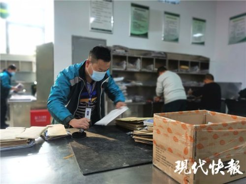 12月8日上午9點(diǎn),現(xiàn)代快報(bào)記者走進(jìn)宿遷市郵政城區(qū)分公司時(shí),李元明正忙著給一批已經(jīng)分類(lèi)好的郵件和包裹蓋上郵戳。“啪啪啪啪……”隨著一聲聲脆響,摞得小山一樣高的包裹很快就被處理好,速度快得像是開(kāi)了三倍速一般。