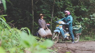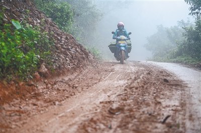 上坡、下坡、再上坡……由于當(dāng)天大霧加上小雨,盡管符蓮香對(duì)這條路熟悉得不能再熟悉,但為了將郵包完好無(wú)損地送到村民手中,她騎得比平時(shí)更加小心。