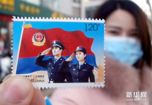 1月10日在江蘇蘇州拍攝的《中國人民警察節(jié)》紀(jì)念郵票。新華社發(fā)(王建康 攝)