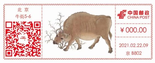 2月22日是辛丑年第一個辛丑日,北京郵政啟用了第一枚《五牛圖》郵資機彩色宣傳戳,并首次嘗試郵資機宣傳戳產(chǎn)品線上定時寄預(yù)約實寄服務(wù)。
