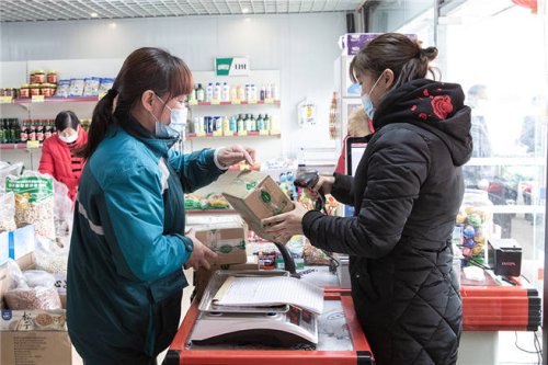 年關(guān)將至,便民站里,越來越多的商品擺上展臺(tái),供居民選購(gòu)?!懊酌婕Z油我都買齊了,今天來買點(diǎn)冰糖,回去做紅燒肉?!贝迕衿ら_仙左手冰糖,右手糯米,“做完肉,還準(zhǔn)備給孫兒做一道八寶甜飯。”