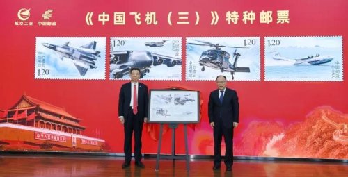 為慶祝中國(guó)共產(chǎn)黨成立100周年、新中國(guó)航空事業(yè)發(fā)展70周年,4月17日,展現(xiàn)中國(guó)航空工業(yè)最新航空裝備發(fā)展成就的《中國(guó)飛機(jī)(三)》特種郵票正式公開(kāi)發(fā)行。在北京舉行的首發(fā)儀式上,中國(guó)航空工業(yè)集團(tuán)黨組副書(shū)記李本正,中國(guó)郵政集團(tuán)黨組成員、副總經(jīng)理康寧共同為郵票首發(fā)揭幕。中國(guó)集郵有限公司同步發(fā)行4枚《中國(guó)飛機(jī)(三)》首日封。