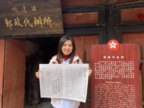 非常榮幸能夠參加“尋跡紅色郵政 傳承紅色基因”甘肅段全媒體采訪報道,從臘子口到哈達(dá)鋪再到會寧,追尋偉大的革命歷程、感悟偉大的長征精神。哈達(dá)鋪鎮(zhèn),一間小小的郵政代辦所,一張報紙《大公報》,為長征中的紅軍指明了前進(jìn)的方向——到陜北去,這一決定改變了革命發(fā)展的趨勢,改變了中國的命運。我要認(rèn)真學(xué)習(xí)紅軍長征精神,立足崗位,勇于挑戰(zhàn)自我,攻堅克難,不負(fù)韶華,為寄遞事業(yè)發(fā)展貢獻(xiàn)青春力量。