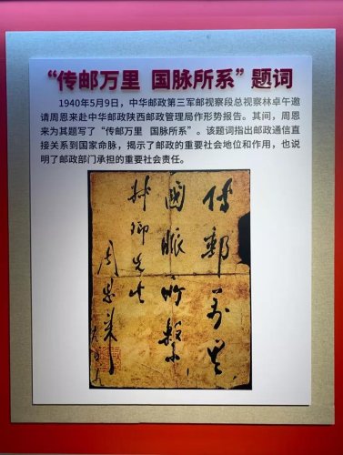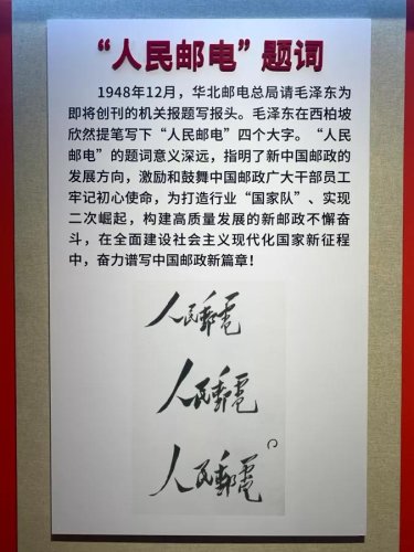 特別是在新民主主義革命時期,毛澤東題詞“人民郵電”,周恩來題詞“傳郵萬里 國脈所系”等珍貴文物,充分反映了郵政在社會發(fā)展中的重要地位和作用,指出了郵政事業(yè)為人民服務的性質宗旨,明確了郵政人的初心使命。