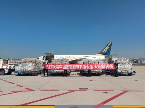 9月14日的大連周水子國(guó)際機(jī)場(chǎng)秋高氣爽,12點(diǎn)29分,一架垂直尾翼上噴涂著EMS、航班號(hào)為CF241的波音737飛機(jī)從這里起飛,14點(diǎn)15分在小雨中安全飛抵日本大阪關(guān)西國(guó)際機(jī)場(chǎng),標(biāo)志著中國(guó)郵政“大連—大阪”國(guó)際航線正式開通。