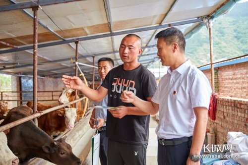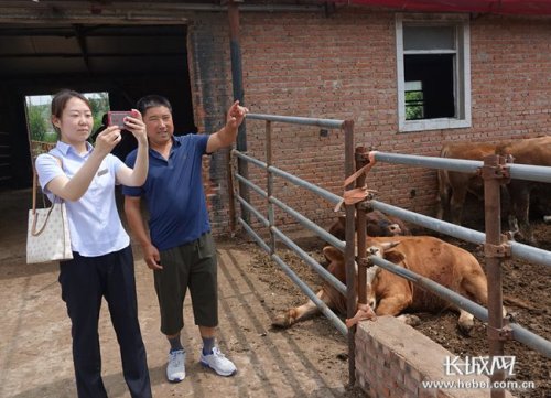 郵儲銀行工作人員深入養(yǎng)殖戶牛舍了解養(yǎng)殖情況和貸款需求。長城網(wǎng)記者 吳新光 攝