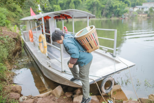 “對哦,庫區(qū)又有包裹啦!”黃曉利一手緊拽滿載包裹的背簍,一手抓住船舷,麻利地弓著身子躥進(jìn)船艙。