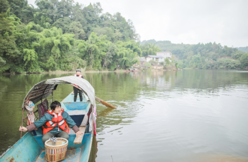 小船劃過碧綠平靜的湖面,朝著包裹的目的地緩緩駛?cè)ァ?/p>