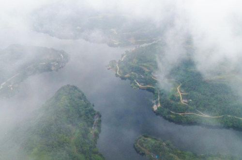返程路上,化龍湖上依舊涼風(fēng)簌簌,岸邊農(nóng)家炊煙裊裊。