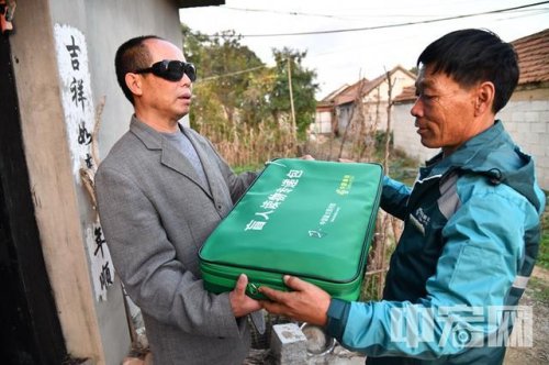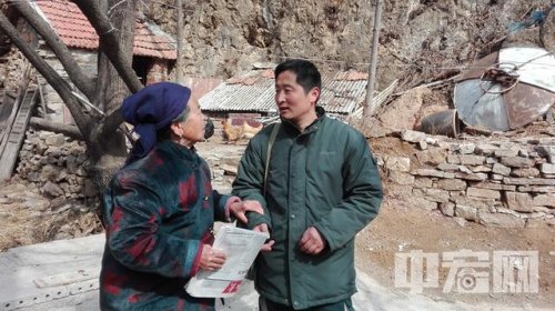 招遠郵政霞塢支局投遞員李翠祥為黑都坡村盲人送盲人讀物郵件