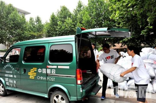 濟南大學(xué)向郵車上裝學(xué)生包裹 崔鵬森攝